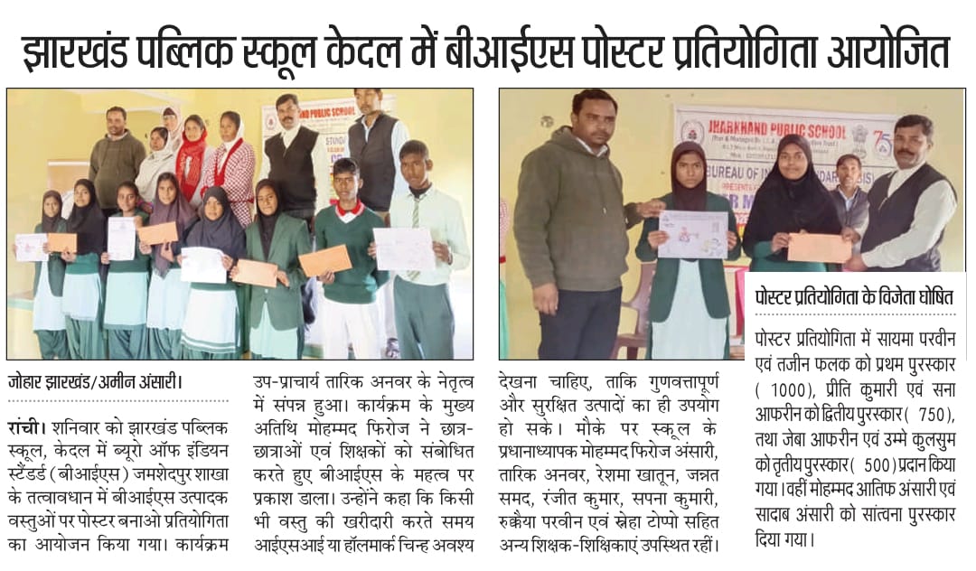 | Event Name | Mentor led Poster making competition at Jharkhand Public high school kedal Ranchi on the occasion of 79th Foundation Day of BIS on the topic "BIS Roles and products" on 17th Jan 2026. |